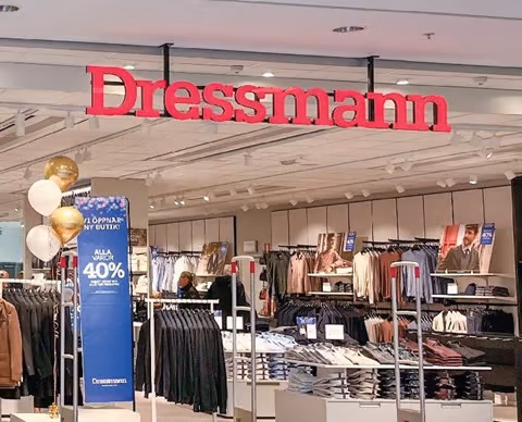 I denna topprenoverade butik hittar de senaste trenderna inom herrmode, allt presenterat i ett stilrent och modernt butikskoncept. Dressmanns butik hittar du i mitten av gallerian på plan 2.