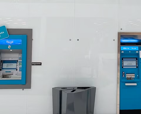 Uttagsautomat samt insättningsautomat finns på torget, plan 1.