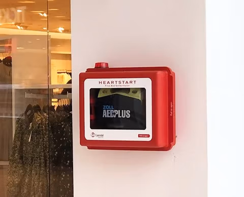 Hjärtstartare finns vid entré 1 (söder) och 2 (norr).